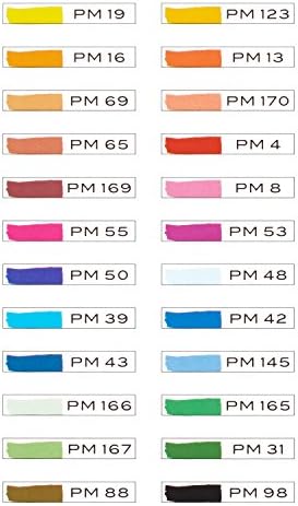 - Incluye: Marcadores artísticos amarillo canario, naranja, vara de oro, marrón siena, rojo toscano, rodamina, violeta, azul verdadero, azul índigo, verde verdadero, verde manzana, marrón oscuro, naranja español, rojo amapola, melocotón, rojo carmesí, rosa, morera, azul cerúleo claro, azul violeta, azul pizarra, verde hierba, verde oscuro y negro