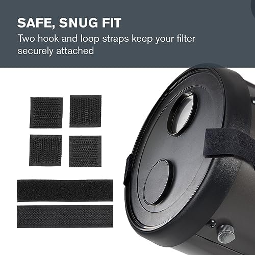 - AJUSTE SEGURO Y CÓMODO: dos correas de velcro mantienen el filtro bien sujeto al objetivo del telescopio. Una tapa de seguridad protege la superficie exterior del filtro cuando no está en uso.