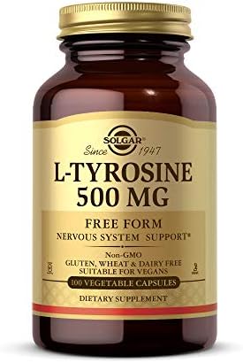 Solgar L-Tirosina 500 mg, 100 Cápsulas Vegetales - Apoyo para el Cerebro y el Sistema Nervioso - Vegano, Sin Gluten, Sin Lácteos, Kosher - 100 Porciones, Empaquetado Estándar