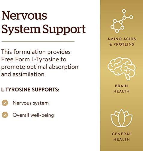 - Sin Gluten, Trigo y Lácteos; La L-tirosina de Solgar es vegana, kosher y libre de: gluten, trigo, lácteos, soja, levadura, azúcar, sodio, sabor artificial, edulcorante, conservantes y color; Adecuada para vegetarianos