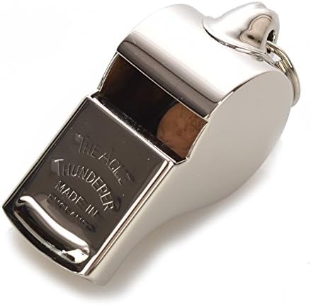 Este es el modelo actual de producción del silbato de agarre de dedo cromado (níquel) pequeño ACME THUNDERER. Modelo # 477/60. 5. Este silbato ha existido durante mucho tiempo y se considera el mejor de los mejores. Boquilla cónica con una bola de corcho natural (guisante). El silbato de agarre de dedo 477/60. 5 tiene un silbato de velocidad resistente al agua. Fácil de soplar con respuesta instantánea. Lo último en investigación y desarrollo de alta tecnología crea el avanzado y moderno Thunderer. Los silbatos de agarre de dedo fueron inventados por ACME en la década de 1890. SILBATOS ACME - HECHO EN INGLTERRA