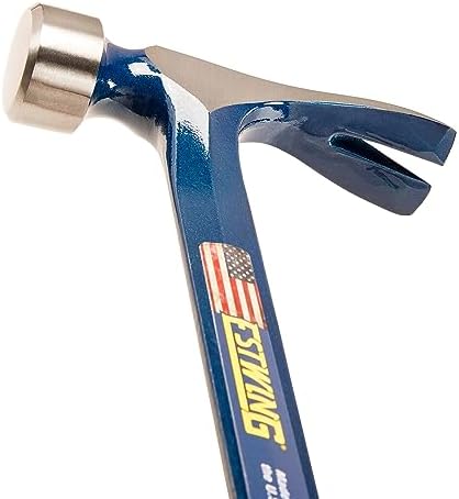 Este martillo enmarcador de 25 oz de acero macizo de la serie Builders con una cara más grande está forjado en acero macizo de 1 pieza y completamente pulido. El equilibrio y el temperamento son insuperables. Tiene una empuñadura antichoque moldeada y adherida que reduce los golpes hasta en un 70% y no se desprende. Los martillos Estwing son los únicos que pueden hacer esta afirmación. Tanto la cabeza como el mango están forjados en acero macizo de una sola pieza y tienen un atractivo revestimiento UV azul. Es el martillo perfecto para aplicaciones generales y de uso ligero a medio. Los martillos para clavos están diseñados para clavar clavos y juegos de clavos comunes y de acabado. Fabricado en EE. UU. Proteja sus ojos de las partículas voladoras y del polvo. Use siempre gafas de seguridad. Los transeúntes también deberán llevar gafas de seguridad.