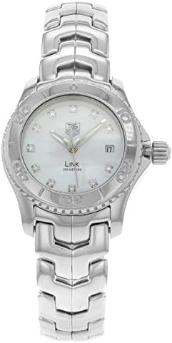 Caja y brazalete de acero pulido, esfera de diamantes MOP 11 blanca, cristal de zafiro convexo resistente a arañazos, bisel giratorio unidireccional con borde festoneado, corona y fondo de la caja roscadas, movimiento suizo de cuarzo, resistencia al agua hasta 200M: Tag Heuer Link - WJ1319.BA0572