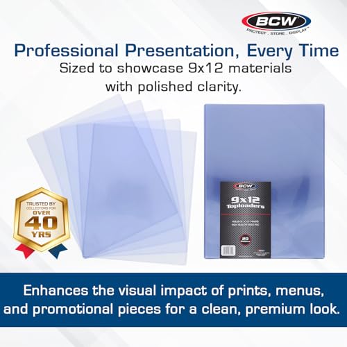 - PREMIUM PROTECTION: Crafted from high-quality rigid PVC, these 9x12 toploaders ensure maximum protection for your collectibles; Ideal for sports memorabilia, movie posters, and large items