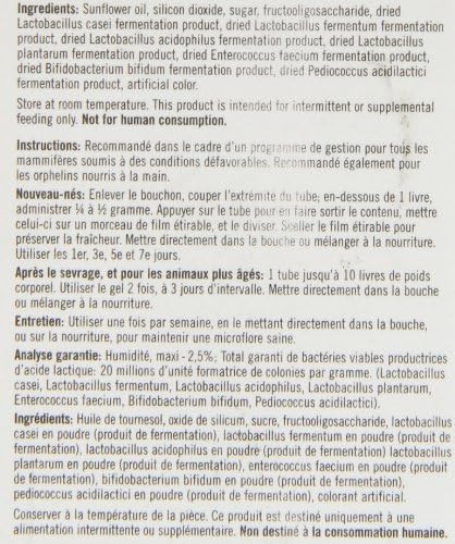 El FOS prebiótico es una fuente de carbohidratos. Contiene microorganismos vivos de origen natural. Cultivo vivo concentrado de siete microorganismos encapsulados en grasa que se encuentran en el tracto intestinal de aves y reptiles. Se garantizan 20 millones de unidades formadoras de colonias (CFU) por gramo de bacterias viables productoras de ácido láctico.