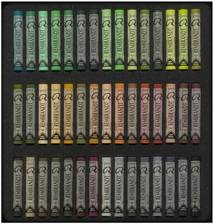 Los pasteles suaves de Rembrandt son los pasteles suaves más populares del mundo con un brillo, pureza e intensidad insuperables. Los pasteles de Rembrandt están hechos de pigmentos puros finamente molidos de la mejor calidad en un aglutinante de arcilla de caolín extrafino. El resultado es una suavidad aterciopelada en todos los colores. Cada color intenso se mezcla a fondo y es uniforme, de extremo a extremo. Los pasteles Rembrandt no contienen puntas duras ni bordes afilados que puedan causar manchas brillantes o arañazos durante su aplicación. Los pasteles de Rembrandt se revisan a mano durante toda la producción para garantizar a los artistas la consistencia en la textura, el color y las cualidades de trabajo de las que dependen.