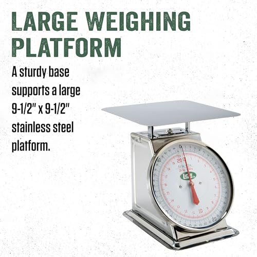 - Sturdy Construction: This heavy-duty mechanical scale has a stainless steel base and platform, helping it last longer and maintain its reliability.