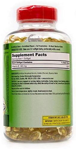 Kirkland Signature Vitamin E 400 I.U. 500 Cápsulas blandas, Botella, Amarilla