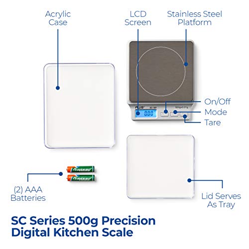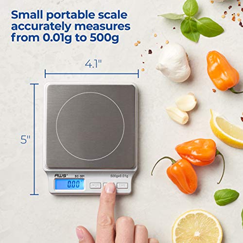 American Weigh Scales SC Series Precision Digital Kitchen Weight Scale, Food Measuring Scale, 2kg x 0.1g (Silver), AMW-SC-2KG (500g x 0.01g)