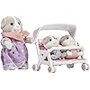 - Incluye a la madre Penny Conejo, los gemelos Patty y Paden, cochecito doble con ruedas giratorias y capota ajustable, juguete de anillo para bebé y juguete de conejo.