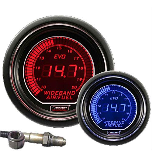 Kit de relación aire-combustible digital Prosport Gauges EVO de banda ancha roja y azul de 52 mm