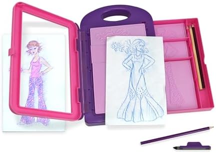 - 16 piezas incluyen 9 planchas de moda de doble cara, 4 lápices, 1 crayon, portacrayones y estuche de almacenamiento
