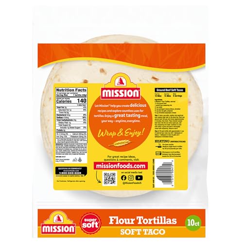 As versatile as they are delicious, Mission Soft Taco Flour Tortillas help adventurous home cooks whip up countless new recipes. Our flour tortillas aren’t just soft—they’re super-soft—and this texture makes them a welcome addition to any meal. So gather friends around the dinner table and treat them to some traditional tacos, or change it up and fill the tortillas with steak and eggs for breakfast. Our soft taco tortillas also don’t contain any trans fat or cholesterol, so they’re sure to become a go-to staple in your pantry. Includes one 10-count package of Mission Soft Taco Flour Tortillas.