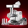 - WHAT'S INCLUDED: This Megaforce 3000 Series Includes: 1 - Size No.12 Polished Aluminum (Food Grade) Grinding Head with Meat Hopper, 3 - 304 Grade Stainless Steel Cutting Blades, 5 - Sizes of Grinding Plates (Includes: 1 - Sausage Stuffing Plate), 3 - Sizes of Sausage Stuffing Tubes (1/2", 5/8" & 3/4"), 1 - Kubbe/Kibbe Making Attachment, 2 - Meat Shredder/Holder Claws, & 1 - 3-in-1 Burger & Slider Maker Press.