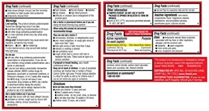 - MEDICAMENTO PARA LA GRIPE Y EL DOLOR: 325 mg de Acetaminophen en cada comprimido alivia temporalmente los síntomas comunes del resfriado como dolores leves, dolor de cabeza, dolor de garganta y fiebre. Mientras que el expectorante y el descongestionante nasal aclaran la mucosidad y la congestión nasal.