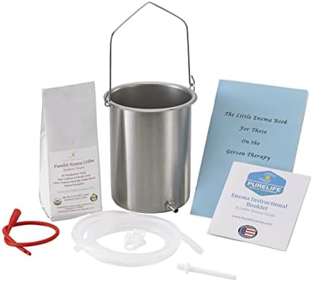 PureLife Coffee Enema Kit / Made in USA/ 304 Food Grade Stainless Steel Enema Bucket/ Medical Grade Silicone Tubing/ 1/2 Lb Organic Air Roasted Coffee/ Doctors #1 Choice