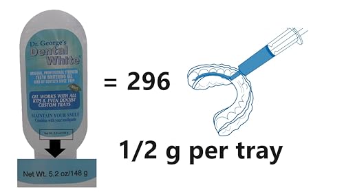 - The bottle contains 148 grams of teeth whitener. Using the syringe consumes .5 grams of gel per tray, which yields 296 trays of teeth whitener. Do the math on how much it costs per whitening treatment.