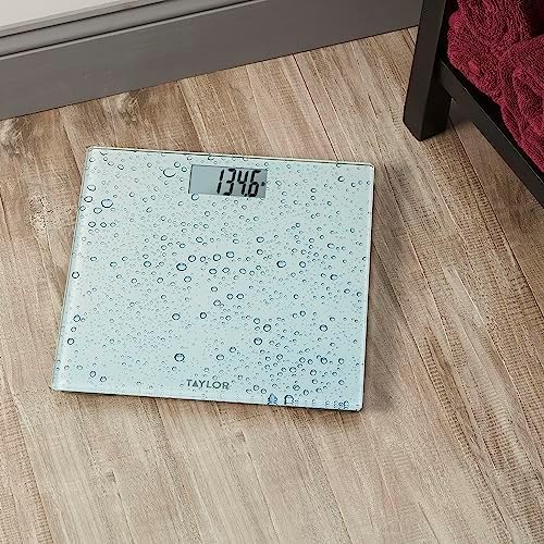 Taylor Digital Scales for Body Weight, Highly Accurate 400 LB Capacity, Auto On and Off Scale, 11.8 x 11.8 Inches, Water Drop Blue