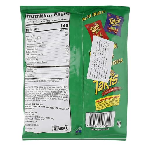 TAKIS Rolled Crunchy Fajitas Tortilla Chips Box with 6 bags of 4 ounces