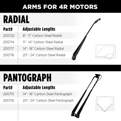- ADJUSTABLE WIPER ANGLES: High performance wiper motor. The wiper angle for blades can be adjusted between 6 possible positions: 40, 53, 65, 85, 100, and 110 degrees. Pick the setting that works best for your vehicle.