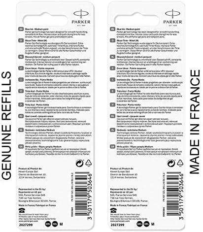 Parker Quink Recarga de Tinta para Plumas de Bola, Punta Media, Tinta Azul, 4 Recargas en Total (30526PP-2PK)