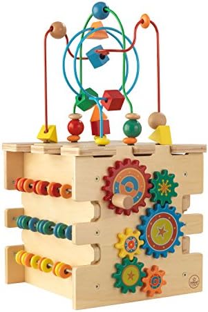 El cubo de actividades de lujo Kid Kraft ofrece cinco caras de diversión colorida para niños de tan solo un año. Cada panel incluye diferentes actividades para ayudar a los niños pequeños a mejorar sus habilidades motoras y aprender los colores, las formas, las letras y los números. Los bloques de letras brillantemente ilustrados giran y se deslizan, los engranajes que se entrelazan giran y las formas coloridas se deslizan a lo largo Incluso hay un ábaco para ayudar a los niños a aprender a contar. La robusta construcción de madera lo convierte en un juguete seguro y resistente para niños mayores de un año.