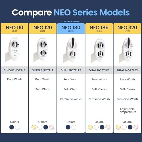 LUXE Bidet NEO 180 - Self-Cleaning, Dual Nozzle, Non-Electric Bidet Attachment for Toilet Seat, Adjustable Water Pressure, Rear and Feminine Wash, Lever Control (White)