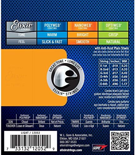 Elixir Electric Nickel Plated Steel Strings with NANOWEB Coating deliver the presence, punch, and personality of traditional electric guitar strings but with extended tone life.