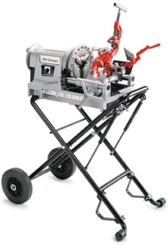 RIDGID 67182 300 Compact Threading Machine, 1/2-Inch to 2-Inch NPT Hammer Chuck Machine with 250 Folding Wheel Stand, Integrated Oiling System