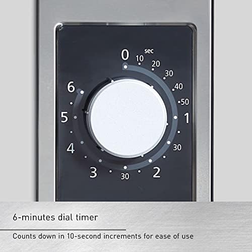 - 6-MINUTE ELECTRONIC DIAL TIMER User-friendly dial timer counts down in 10-second increments; Timer resets automatically after countdown