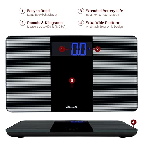 Escali Extra Wide Digital Bathroom Scale for Body Weight with Wide Platform for Natural Stance and Stability, High Capacity of 400 lb, Batteries Included