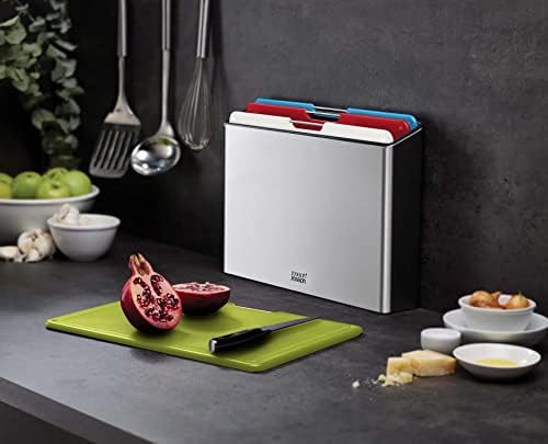 Joseph Joseph Index Plastic Cutting Board Set with Stainless Steel Storage Case Color-Coded Dishwasher-Safe Non-Slip, Large, Steel Multicolored