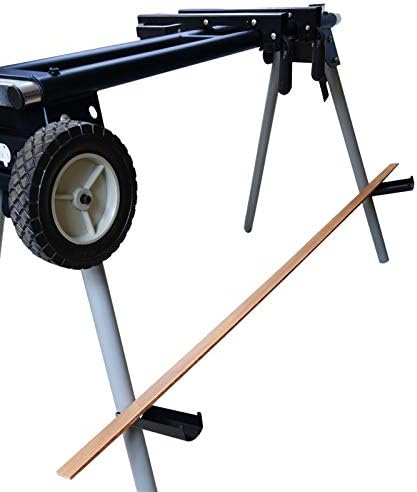 - FEATURES: Portable design with super-grip 8-inch rubber wheels, spring-loaded locking legs for easy set-up and break down, universal quick-release mounting brackets that work with most miter saw