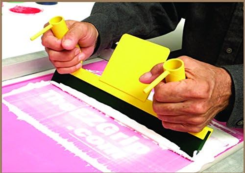 The EZGrip Squeegee is a revolutionary new product that greatly reduces print fatigue, while simultaneously giving you better squeegee blade life. Its ergonomic two handle design works great for both push and pull strokes, and provides a comfortable grip which aligns the hands and adjoining wrists to promote a healthy posture that reduces stress, pain and the potential of Carpal Tunnel Syndrome. The flood grip makes flooding the screen with a single hand a breeze, that way you can hold up the screen with your other hand. The 13" handle can accept squeegee blade lengths from 6" up to 14", and also has little feet under the handles that prevent the squeegee from falling into the ink. What truly sets The EZ Grip apart is how easy it is to switch out your squeegee blade. Absolutely no glue, bolts or staples needed. The patent-pending "friction grips" on the inside of the handle keep your squeegee blade secure, and since there's no glue, bolts or staples needed, you can easily use all 4 edges of the blade for a much longer life-span. If all that's not enough for you, The Ez Grip is also proudly made in the USA. Two Ergonomic Upright Handles 13" Handle Can Accept Blade Lengths From 6" Up To 14" Flood Grip For Single Hand Flood Strokes Self Standing In & Out of the Screen Install Blade in 3 Seconds Without Screws Doubles the Life of the Blade Protects Blade from Damage Uses Any Size Blade Up to 14" One Piece Construction Smooth Surface Faster & Easier To Clean Light Wt. 5 oz.