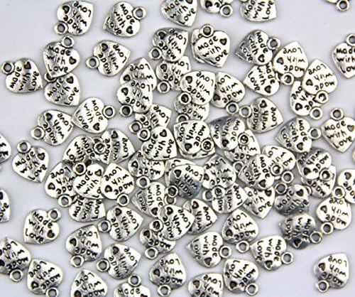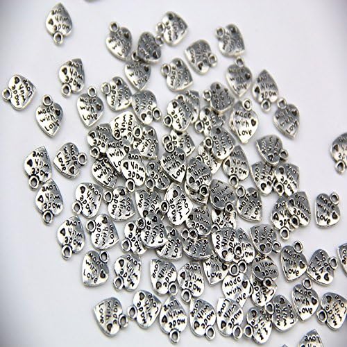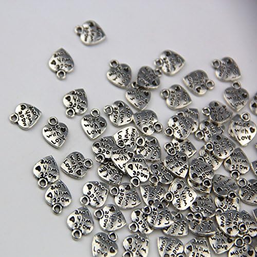 One Pack of 200 DIY Heart-Shaped "Made With Love" Carved Silver Tone For Charms,Pendants,Crafting,Sewing