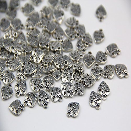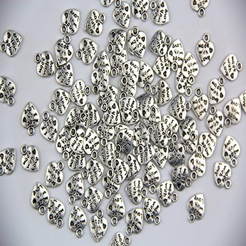 Brand new, Fashion Design and High Quality.Vintage style with silver tone and heart shape.With about a 2mm hole,you can thread a red string to make a bracelet or even use your sliver necklace chain to make a new necklace. Or even you can sew on your clothes or shoes to look different. Anyway, they have so many uses.Love "Heart" shape like, it means Love and Care.It's perfect for gift sending.Material:Alloy,50pcs included in one bag. This Pack includes 4bags.