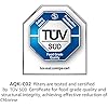 - Certificación de grado alimenticio TÜV SÜD: El filtro de café AQUACREST AQK-02 ha sido probado por TÜV SÜD para materiales de grado alimenticio y es el único que ha pasado la certificación entre los filtros de café compatibles con Saeco y Philips Saeco. Adopta material libre de BPA y no filtra contaminantes en el agua.