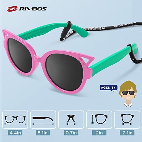 Gafas de sol RIVBOS para niños Niñas con correa Polarizadas con protección UV Flexibles para bebés y niños de 2 a 10 años RBK002-2 Rosa y Verde