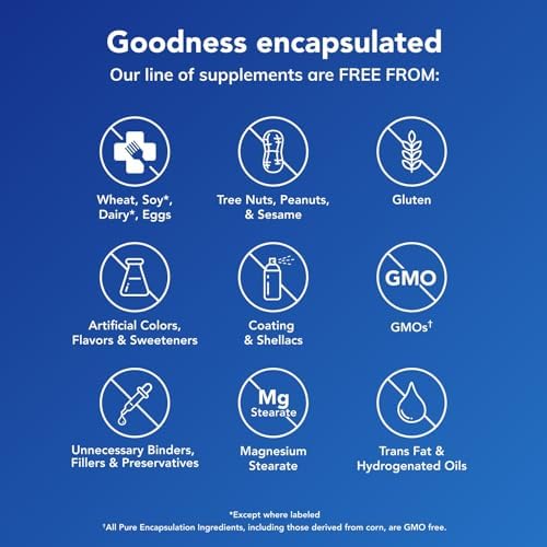 • Pure Difference: What makes us different isn't just our process or what goes into our supplements -- what we leave out matters, too. Pure Encapsulations products are free from wheat, eggs, tree nuts & peanuts, gluten, artificial colors, flavors & sweeteners, coatings and shellacs, GMOs, and unnecessary binders, fillers & preservatives.