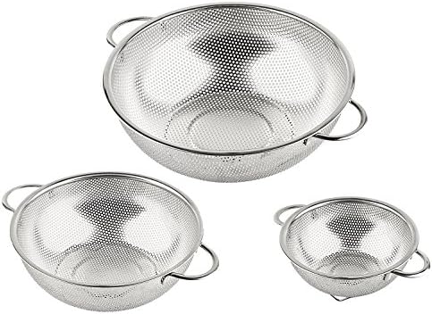 Juego de Coladores de Malla Microperforada de Acero Inoxidable de 3 Piezas (1 Cuarta, 2.5 Cuartas y 4.5 Cuartas)