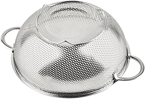 • DISEÑO SUPERIOR: El colador de malla completamente perforado y el diseño con base proporcionan un drenaje superior con una pérdida mínima. La malla es resistente y no se deformará, estirará ni se enredará incluso con alimentos pesados. Además, es 100% apto para lavavajillas y fácil de limpiar.