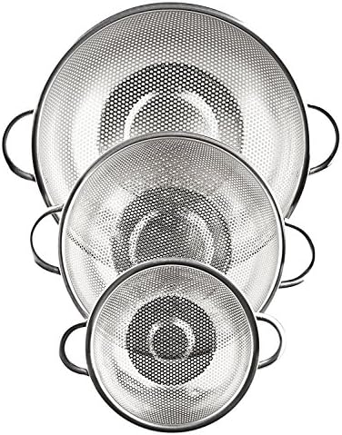 • ACERO INOXIDABLE DURADERO: Construcción de acero inoxidable de alta resistencia para máxima durabilidad a un precio imbatible. Mangos robustos y malla duradera hacen que este juego de coladores sea imprescindible. ¡No se oxida ni siquiera en el lavavajillas! Libre de BPA, por lo que no filtrará químicos de plástico en su comida.
