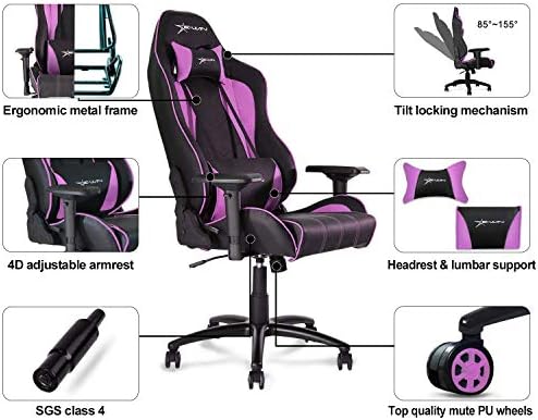 Ewin Gaming Chair Champion Series 4D Armrests Recliner Memory Foam Ergonomic High-Back PU Leather Racing Executive Computer Office Chair CPB-Pink