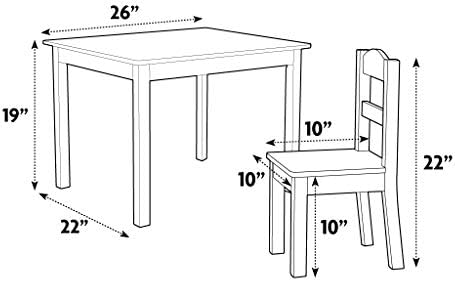 • Quick Assembly with Humble Crew Quality: Assemble this kids’ table and chair set with included hardware and instructions. Perfect for play and learning, the table measures 22"W x 26"D x 19"H and chairs are 10"W x 10"D x 20"H with a 10" seat height.