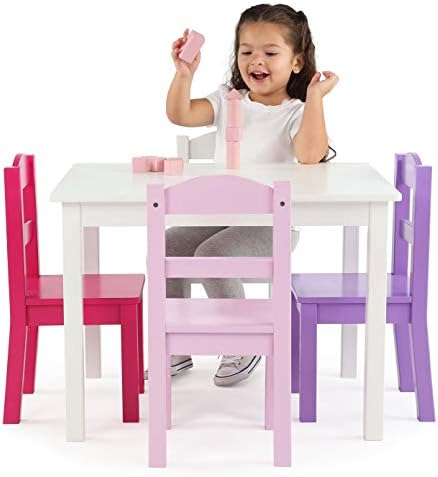 Humble Crew Kids Wooden Table and 4 Chairs Set, White/Purple/Pink - Kids Table and Chair Set for Toddlers and Children for Arts, Crafts, and Snack Time - Sturdy, Durable Toddler Activity Table