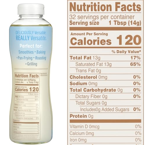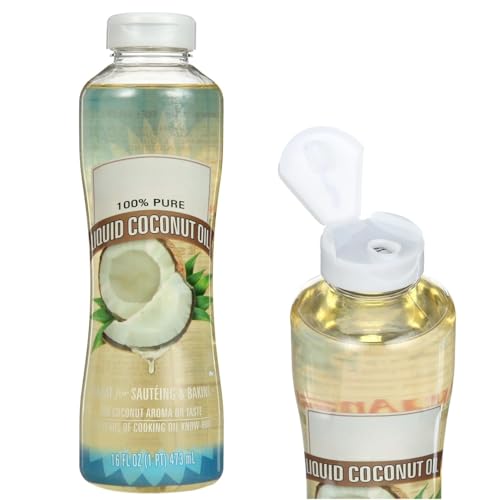 100% Pure Liquid Coconut Oil 16oz, Great for Cooking, 4x Medium Chain Triglycerides - Pack of 1