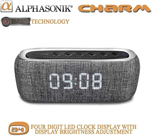 Alphasonik Charm Wireless Bluetooth Portable Speaker with Digital LED Alarm Clock, Auto and Manual Dimmer, FM Radio, HD Sound and Bass, Micro USB, Auxilliary 3.5mm, SD Card, for iPhone and Samsung