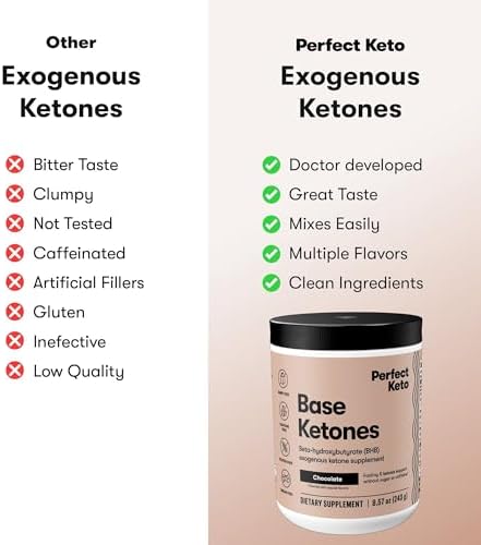 Perfect Keto Exogenous Ketones Powder, BHB Salts for Ketosis & Fasting Support, Electrolytes for Hydration, Caffeine Free Energy, Chocolate, 8.57 oz