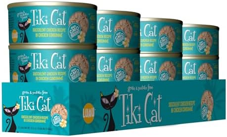 - High moisture canned food – count on the high moisture Content of each can of Luau to give your cat the supplemental water she needs.