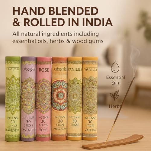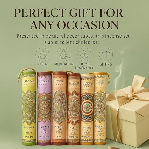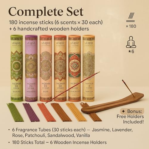 Premium Incense Sticks, Lavender, Sandalwood, Jasmine, Patchouli, Nag Champa, Vanilla, Variety Gift Pack 180 Sticks, Includes a Holder in Each Box